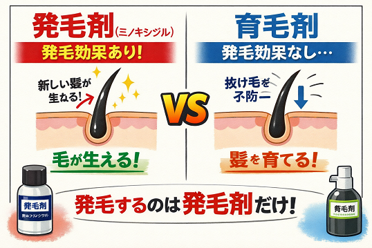 発毛剤と育毛剤は、どちらも薄毛対策として知られていますが、 実は目的も役割もまったく異なります。 この違いを理解せずに選んでしまうと、 「思っていた効果が出ない」と感じる原因になりやすいです。